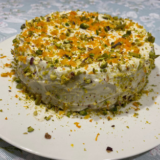 Mezclando bien esos ingredientes tendremos una riquísima cobertura y para terminar nuestra carrot cake le ponemos ralladura de naranja y pistachos machacados.